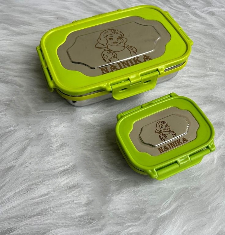Personalized Stainless Steel Lunch Box with Your Child Name and Favorite Character Engraved on Tiffin Box.